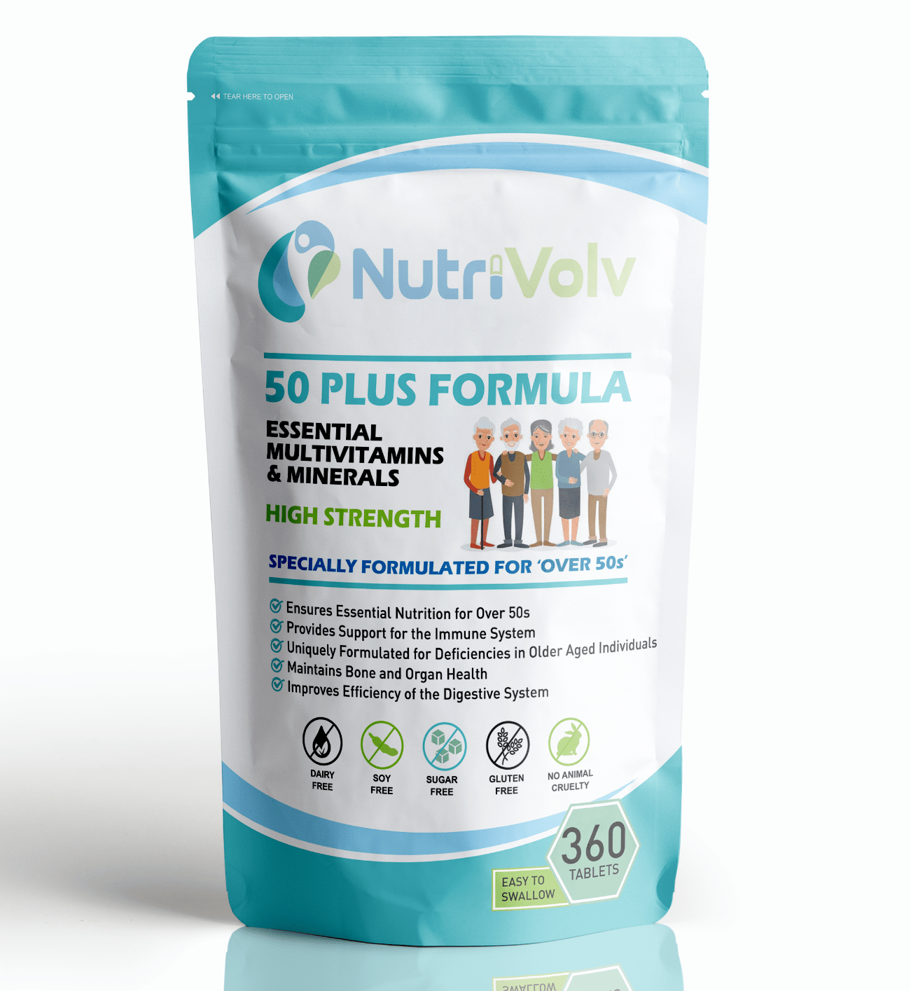 Each easy-to-swallow tablet packs a specific potent blend of essential multivitamins and minerals for those Over 50 ensuring maximum benefit is reaped for a healthy and younger feeling you! The NutriVolv Guarantees: