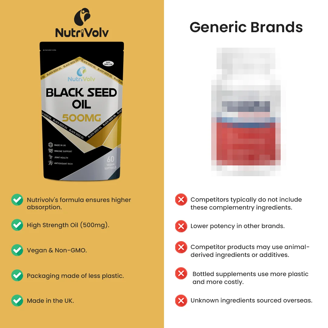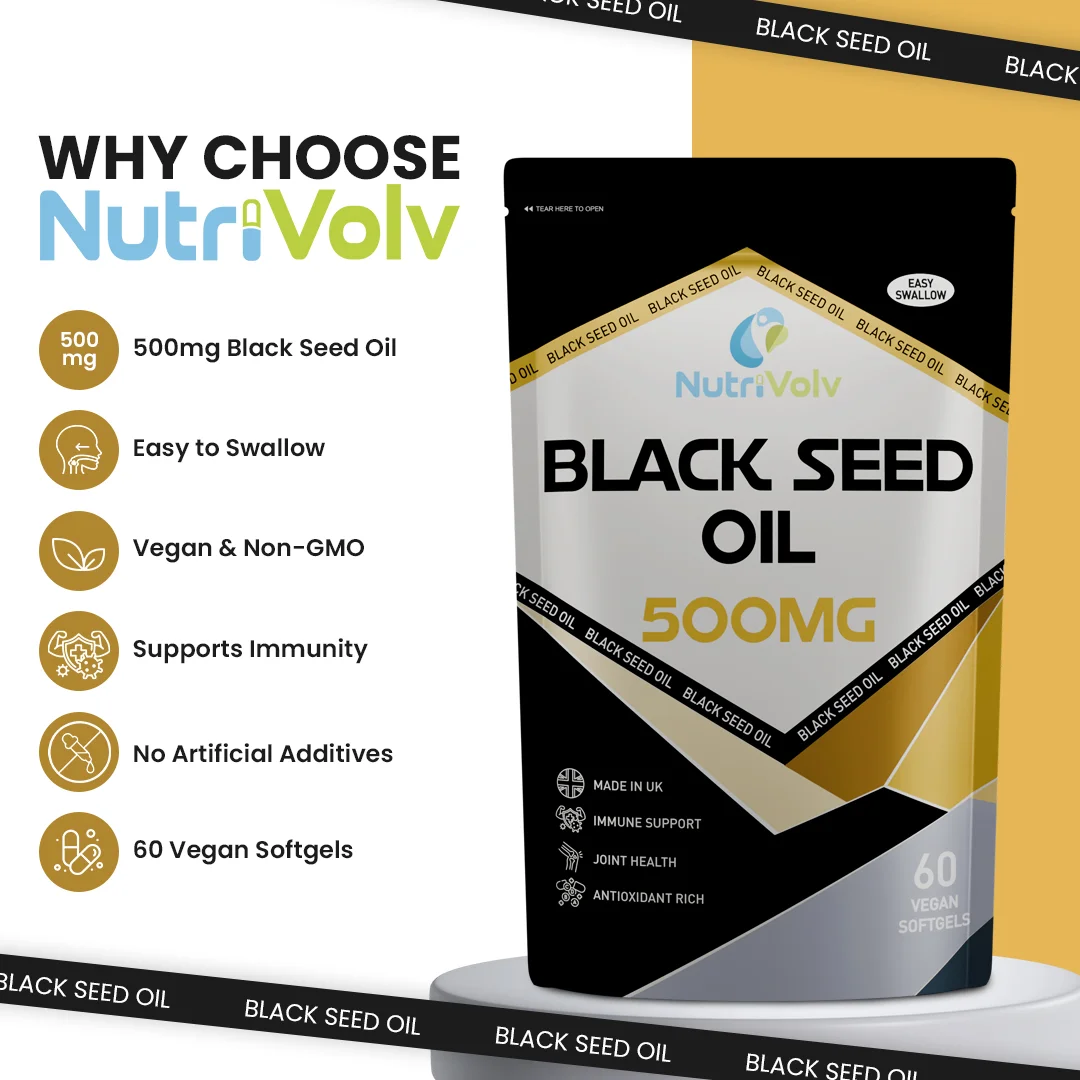 Yes, black seed oil has strong anti-inflammatory properties that can significantly reduce joint pain and stiffness, particularly for people with rheumatoid arthritis or general inflammatory conditions. The active compound thymoquinone works by blocking inflammatory pathways in your body, similar to how non-steroidal anti-inflammatory drugs (NSAIDs) work but through a natural mechanism. Research shows it can reduce inflammatory markers like C-reactive protein and reduce swelling in affected joints. Many people notice less morning stiffness and improved mobility within two to four weeks of daily use. It won’t work as quickly as prescription anti-inflammatories, but it offers a gentler approach with fewer side effects when taken long-term. The omega fatty acids in black seed oil also support joint lubrication and flexibility. Nutrivolv’s 500mg softgels use pure cold-pressed oil extracted at low temperatures to preserve the delicate compounds that give black seed oil its anti-inflammatory punch. Take one to two capsules daily with food for best absorption and sustained joint comfort throughout the day.