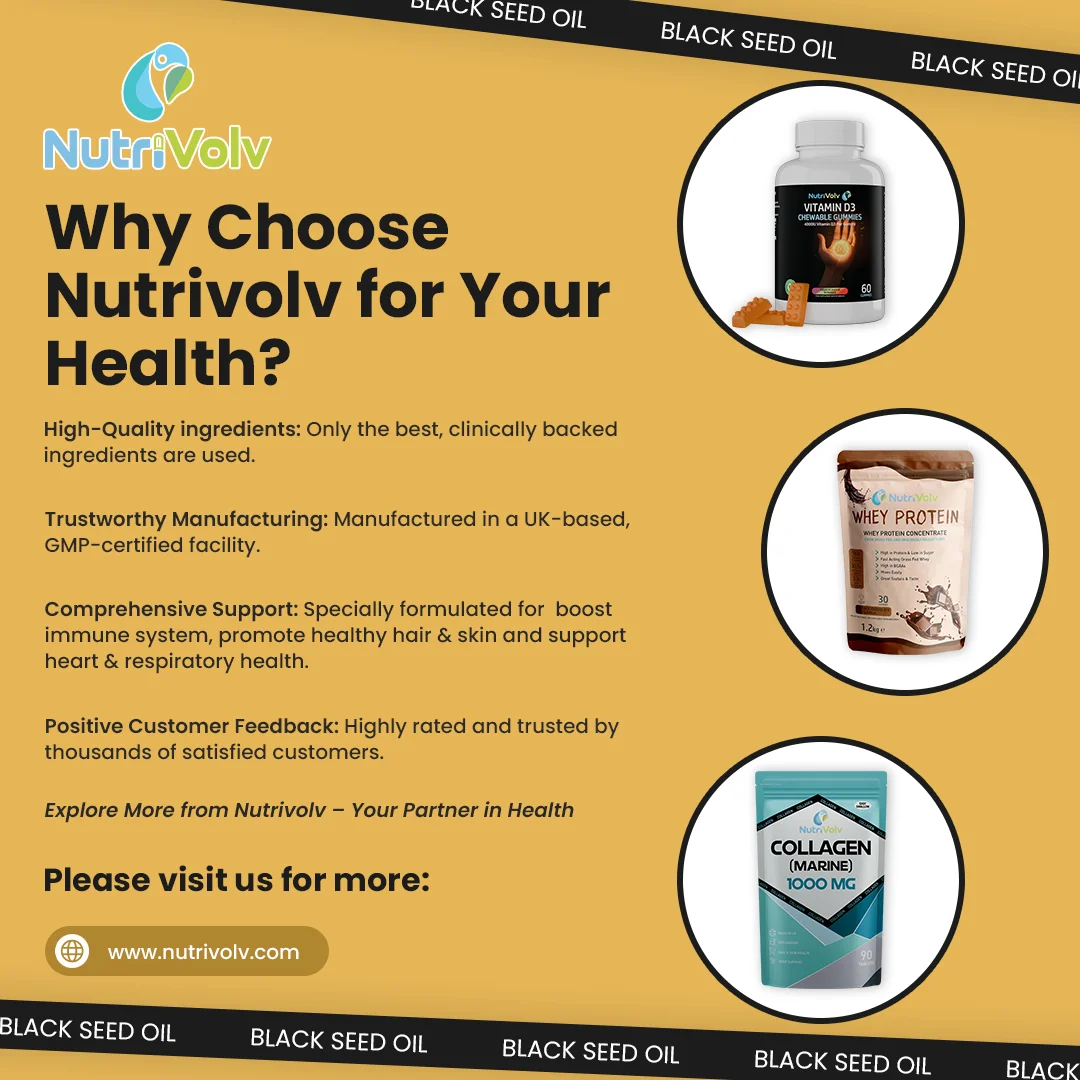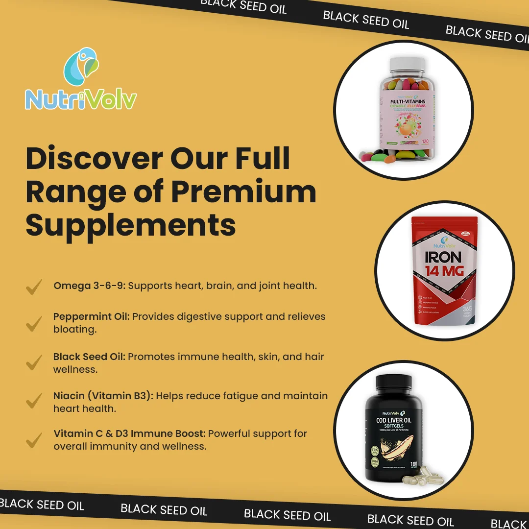 Black seed oil and fish oil serve different but complementary purposes, so which is better depends entirely on your health priorities. Fish oil is unmatched for omega-3 fatty acids (EPA and DHA) that support heart health, brain function, and reduce triglycerides. Black seed oil excels at immune support, anti-inflammatory effects, and blood sugar regulation through its unique compounds like thymoquinone that fish oil doesn’t contain. If you’re focused purely on cardiovascular health or brain function, fish oil is the stronger choice. If you’re dealing with inflammation, immune weakness, or metabolic issues like insulin resistance, black seed oil is more targeted. Many people benefit from taking both since they work through different mechanisms and don’t compete with each other. Nutrivolv’s black seed oil softgels use halal bovine gelatin, making them suitable for dietary restrictions that might exclude fish-based supplements. The cold-pressed extraction preserves delicate compounds that heat processing destroys, ensuring you get the full therapeutic benefit that’s been used traditionally for thousands of years.