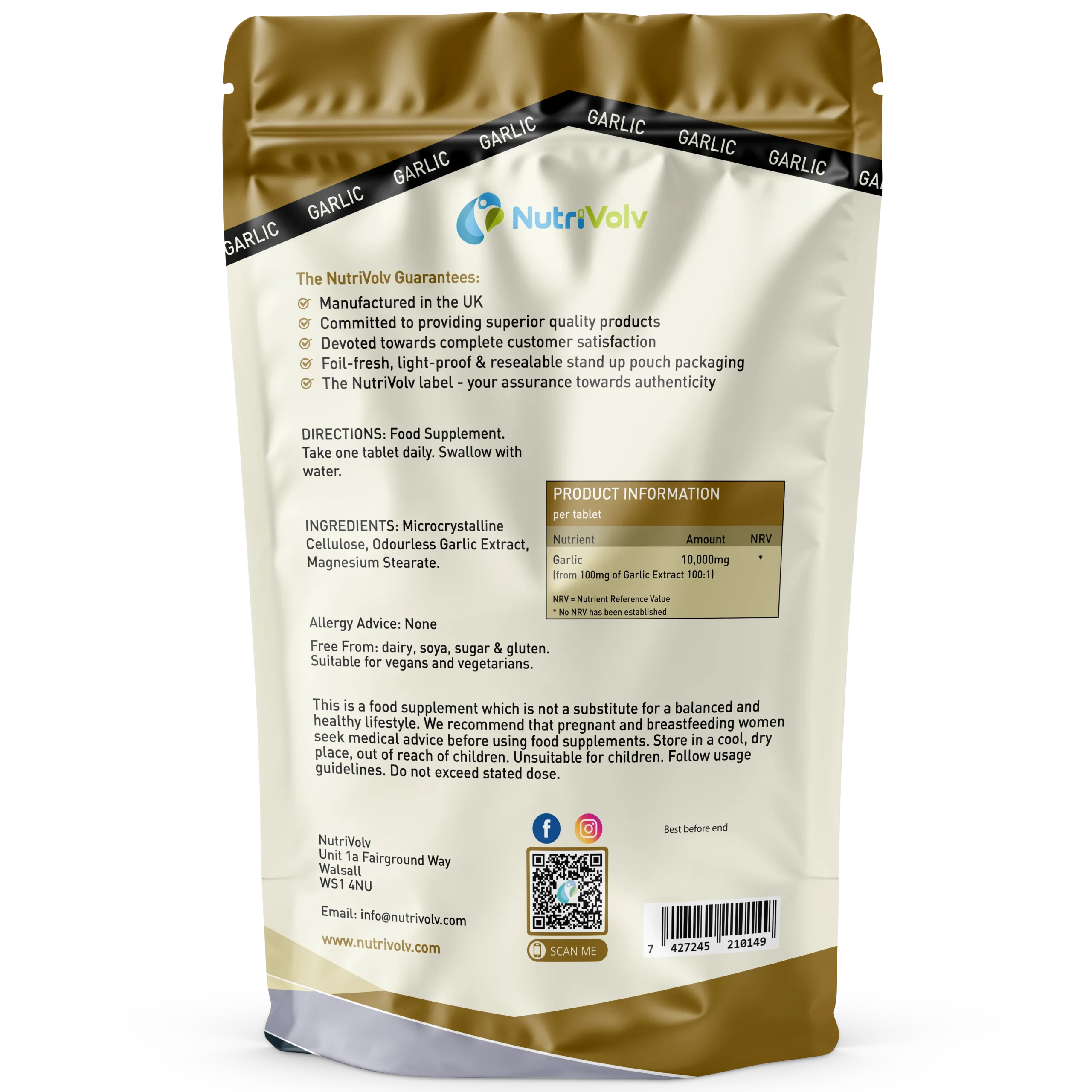 - Each Garlic Tablets equivalent to 10000mg of fresh garlic bulb