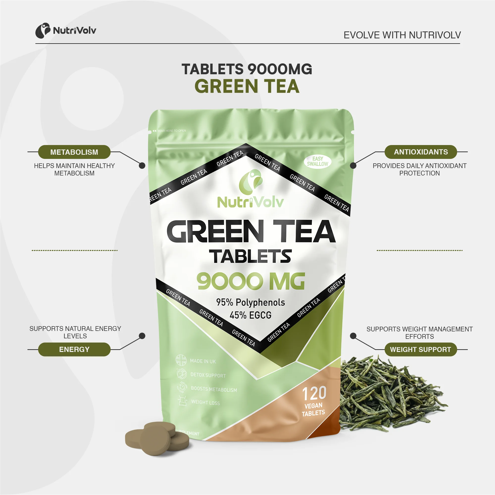 Here is a summary of the benefits of our Green Tea tablets: