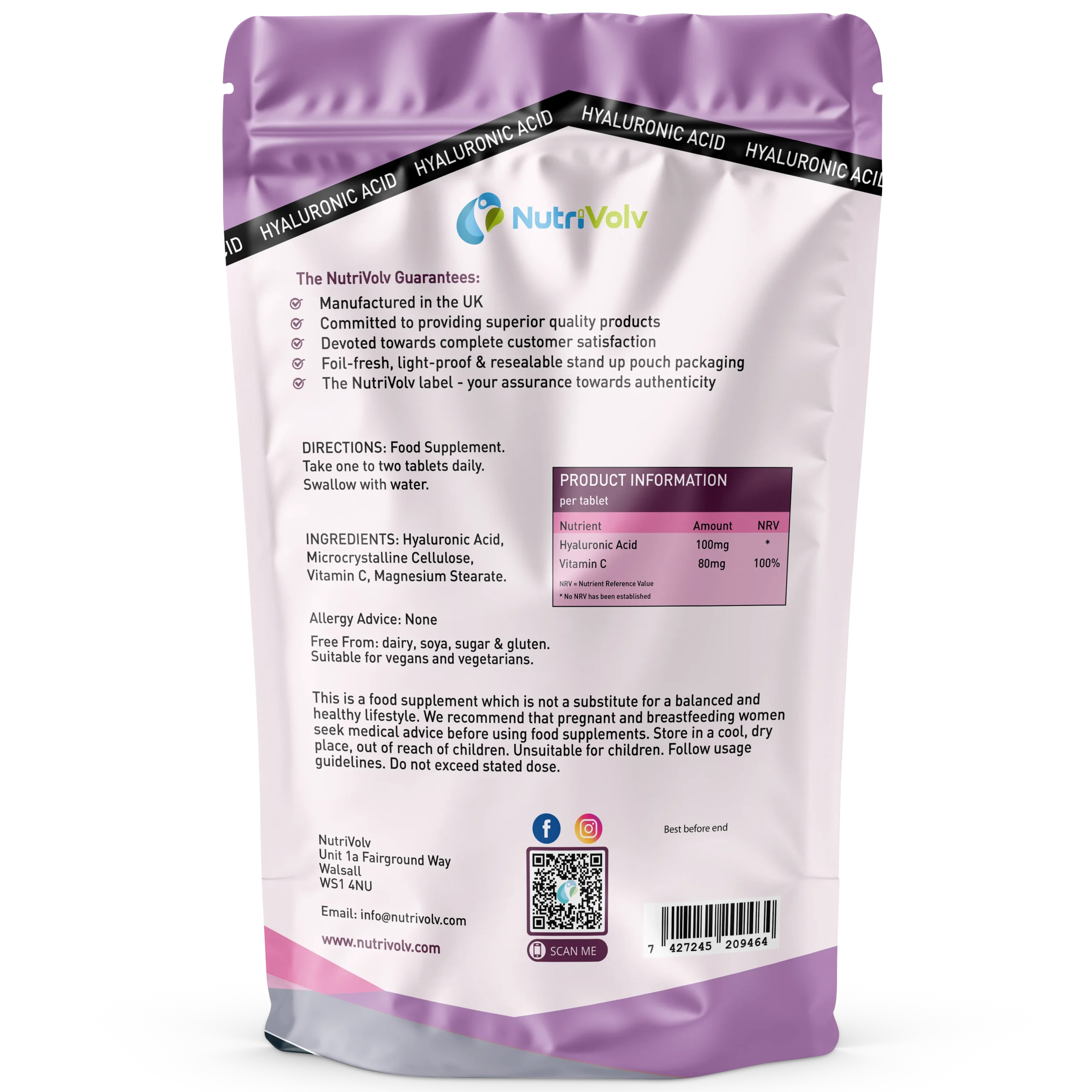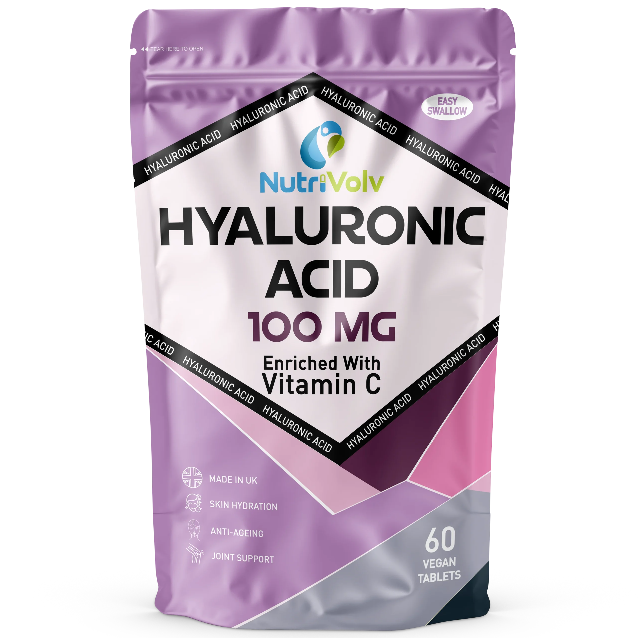 Here is a summary of some benefits of NutriVolv’s Hyaluronic Acid & Vitamin C tablets: