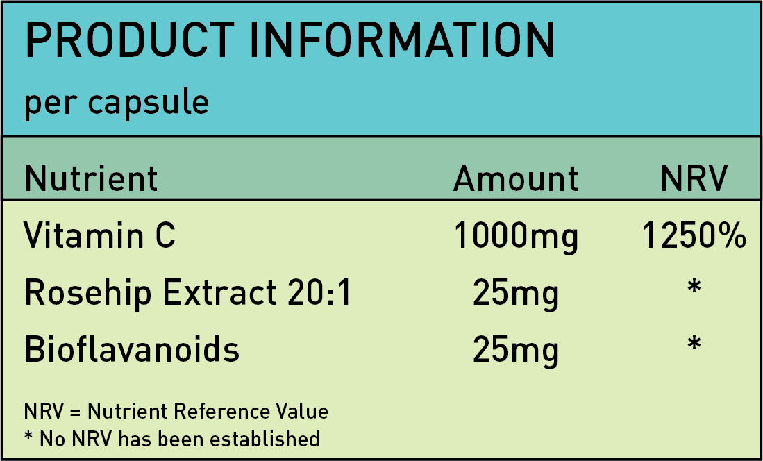 Each easy-to-swallow capsule contains 1050mg of the blend of Vitamin C. Rosehip & Bioflavonoids providing a powerful combination to enhance your wellness!