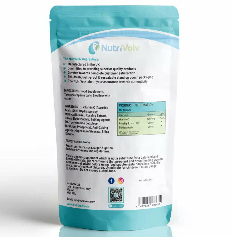 Our blend of Vitamin C, Rosehip & Bioflavonoids (120 Capsules) works together seamlessly to support the immune system. Each component of the formula provides a multitude of benefits to your health as we have ensured that the potency is at double the standard strength of such supplementation. Vitamin C is an important nutrient for the functioning of white blood cells. which are vital components of the immune system. It is needed for amino acid metabolism. neurotransmitter synthesis. and the utilization of many nutrients. such as folic acid and iron. The rosehip in this formula acts as an enhancement to the effects of Vitamin C as it possesses great levels of antioxidants. This provides increased effectiveness in boosting the immune system. Similarly. Citrus Bioflavonoids are also powerful antioxidants and they are derived from citrus fruits. They reduce oxidative stress helping to reduce pain. inflammation and your proneness to disease. They provide balanced immune cell activity creating a better immune response. Along with this. they are also proven to support respiratory health. Here are some benefits of our Vitamin C. Rosehip & Bioflavonoids blend: